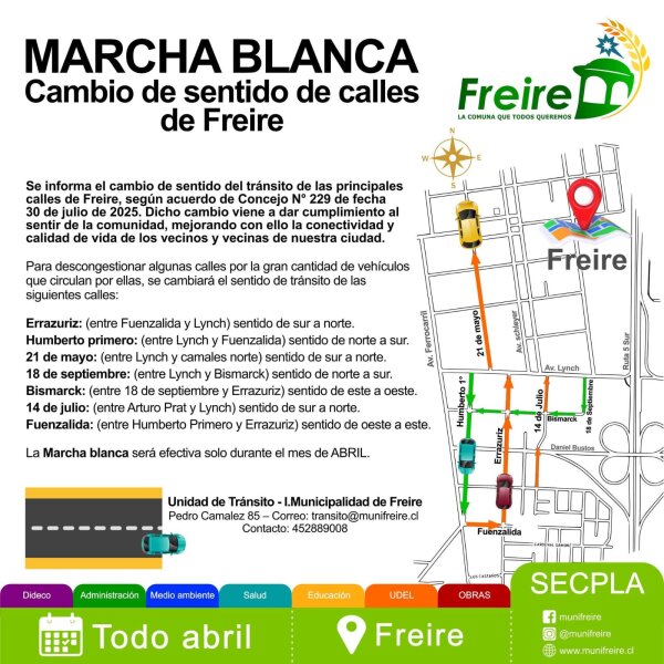 Un importante proceso de modernización y ordenamiento del tránsito comenzó a implementarse en la comuna de Freire, como parte de una estrategia impulsada por la actual administración municipal para mejorar la seguridad vial y la fluidez del desplazamiento tanto de vehículos como de peatones.